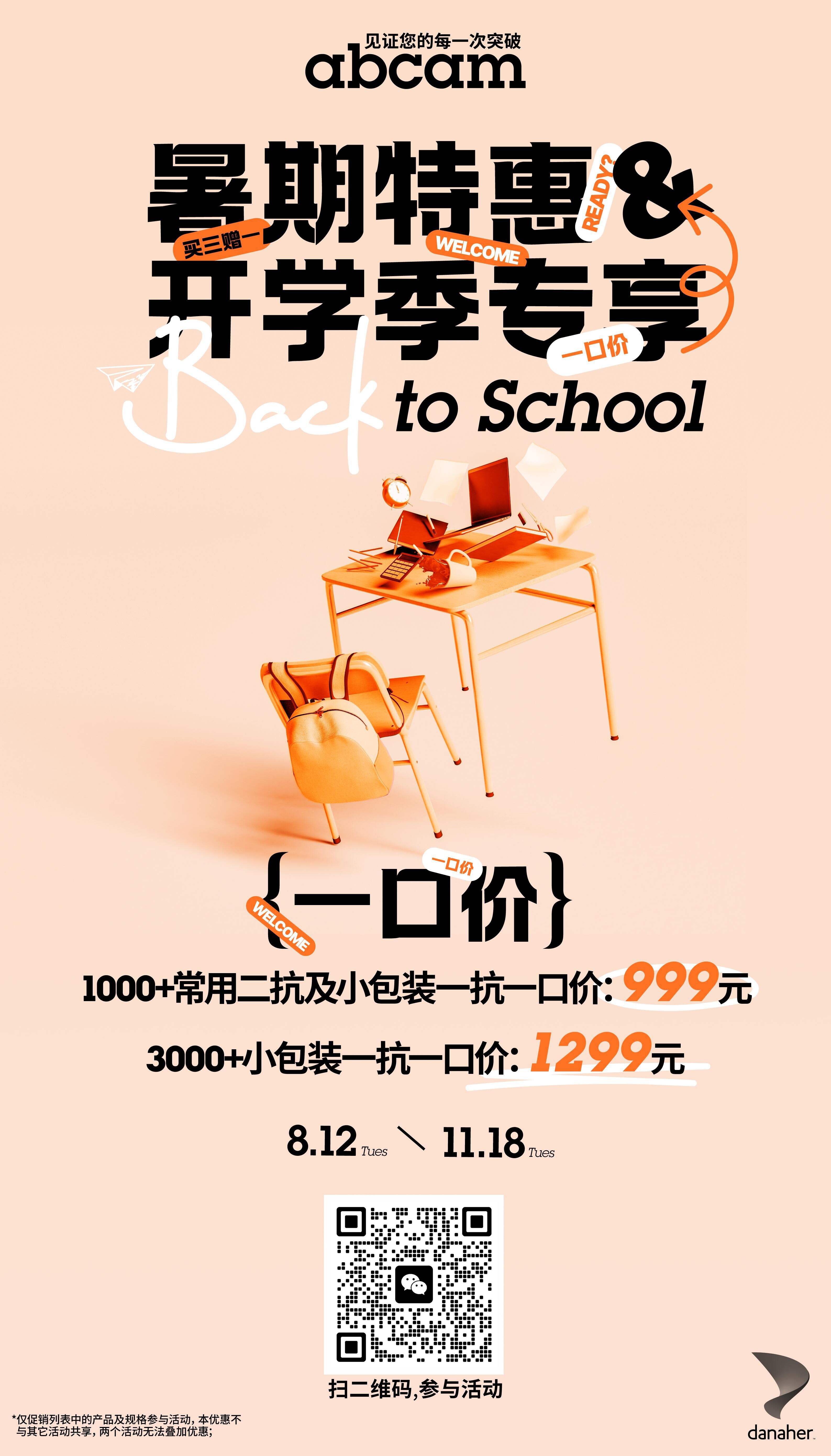 即日起,订购ABCAM任意3支指定抗体(同种属/同应用),即赠1支同价值抗体!赠品可与主订单同种属或同应用。 优质抗体,精准验证,助您实验效率翻倍