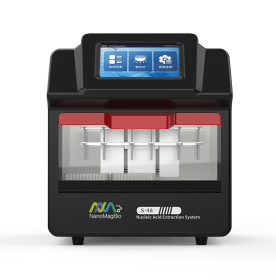 S-48 是一套整合的核酸自动制备系统,可以从全血、病毒、组织、植物、细菌和培养细胞等多种生物样本中纯化核酸。凭借智能化预装提取程序、配套的基于生物磁珠的核酸提取试剂盒和耗材,该系统可为实验室提供高效、自动化、高品质核酸纯化解决方案,服务于下游基因分析和分子诊断。